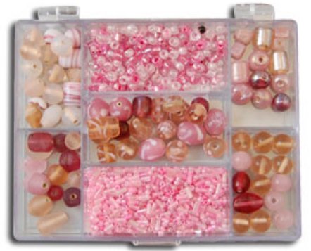 Darice's glass beads in a storage box is a great way to get started with jewelry making. 110 grams. storage box included. Pink.