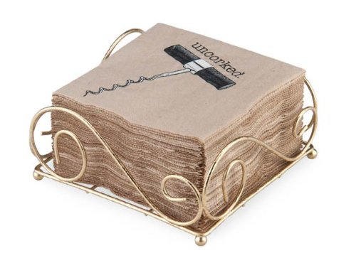 -. Feature : Decorative cocktail napkin holder organizes your kitchen table, buffet, bar, or counter top / 5.5-inch square x 2.5-inch tall tray neatly stores an ample supply of standard beverage-sized napkins / Made of sturdy metal with ball feet and a gold leaf finish, many designs and finishes available separately / Keeps disposable paper napkins handy and clean for family and guests or fill with folded fabric table linens / Search Ideal Home Range, market leader, for quality tissue napkins in casual and elegant designs to fill