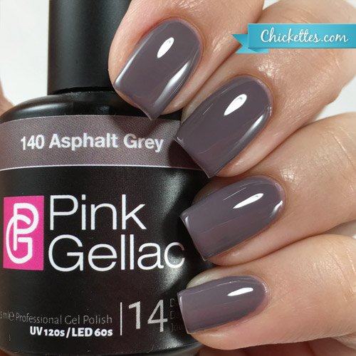 High quality European gel polish. Asphalt Grey is a dark grey cream gel polish. It cures in a UV (120 seconds) or LED (60 seconds) nail lamp. Pink Gellac gel polish lasts 14-21 days with no chipping or peeling!Feature
