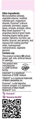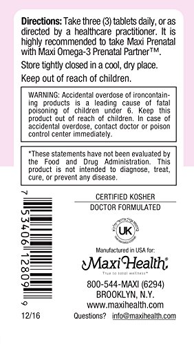 We at Maxi-Health Research have engineered Maxi Prenatal (3 tablets daily) to ensure your health and energy, and the health of your fetus. This comprehensive supplement will provide you with the essential nutrients you need. The Maxi Prenatal Difference: Amino Acid Chelates are mineral and trace elements with maximum bioavailability, tolerability and safety. We use only the finest from Albion Labs formulated to survive the gastrointestinal system, and protect the sensitive mucosal membranes of the stomach and intestines from irritation! Vitamin C supports blood vessels, capillary, and vein strength and helps support a healthy immune system. Natural Vitamin E (d-alpha tocopheryl succinate) has been found to be superior in absorption to the synthetic forms (dl type) and its respective acetates. ChromeMate chromium (chromium polynicotinate) has been found to be 18 times more biologically active than other chromium compounds is an organic complex that contains niacin as well as cystiene and other nutrients. Biotin is a cofactor for several enzymes, and is essential for carbohydrate metabolism and the synthesis of proteins. Biotin supports the growth and development of healthy nerve tissue and aids in the use of B vitamins and synthesis of ascorbic acid. Pantothenic acid supports a healthy immune system and also aids in the production of hormones. It is essential for proper metabolism of food and is vital during pregnancy. Iron as Ferrochel) is a patented, nutritionally functional amino acid chelate form of iron. Human clinical studies have shown it to be an iron of great bioavailability and tolerance (easy on the system). Magnesium (magnesium citrate) a natural source of magnesium, provides the body with additional magnesium as well as a non-irritating stool softener much needed during pregnancy. Inositol provides the nutrient necessary to make cellular membranes. It's your bundle of joy, handle with care! Take care of both of you with Maxi Prenatal.Feature