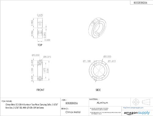 Climax Metal 2C-118-A Aluminum Two-Piece Clamping Collar, 1-3/16" Bore Size, 2-1/16" OD, With 1/4-28 x 3/4 Set Screw