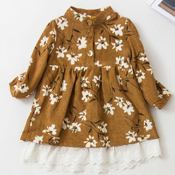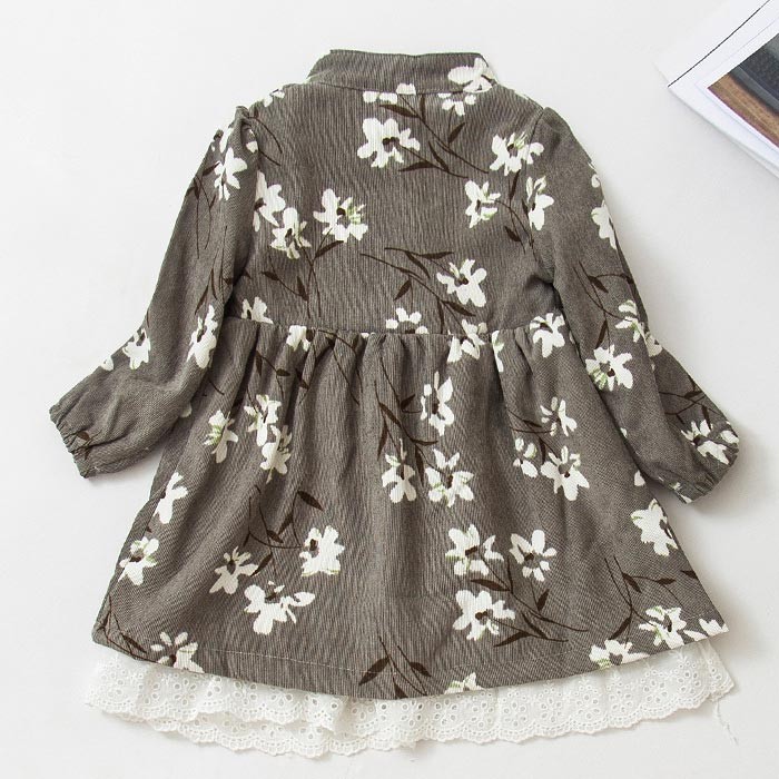 【製品仕様】■商品説明・花柄と裾レースのワンピースがとても可愛い1枚・生地が柔らかく着やすい ■サイズ 90cm: 肩幅:22cm バスト:29cm 総丈:44cm 100cm: 肩幅:23cm バスト:30cm 総丈:47cm 110cm: 肩幅:24cm バスト:31cm 総丈:50cm 120cm: 肩幅:25cm バスト:32cm 総丈:53cm 130cm: 肩幅:26cm バスト:34cm 総丈:56cm ■素材 コットン、ポリエステル■色グレー、イエロー