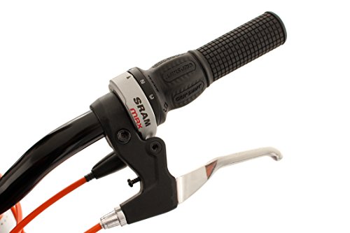 Das Bike ist mit einer SHIMANO 21-Gang-Schaltung ausgestattet, die komfortabel über SRAM Drehschaltgriffe bedient werden. Durch den vollgefederten Rahmen behalten Sie auch auf holprigen Strecken immer die Kontrolle. Für die sichere Verzögerung in jeder Situation sorgen dabei zwei Scheibenbremsen.