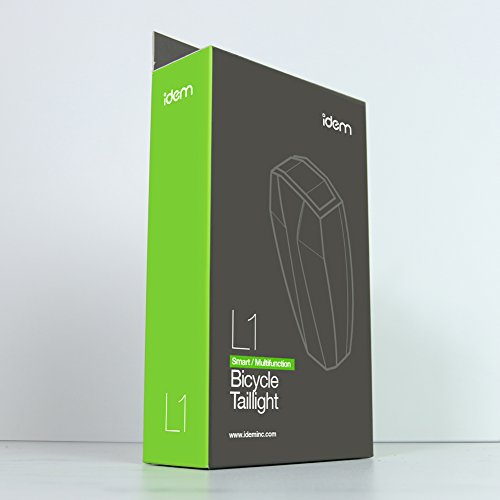 Studio : IDEM INC. Publisher : IDEM INC. Product Description Summary of Features 1. Ultra-bright brake signal whenever bike slows down abruptly, day or night. 2. Taillight with autosensing capability that turns on and off by itself when you want itto. It is your choice - for ultimate cycling safety or for power saving in broad daylight. 3. USB rechargeable. 4. SOS distress signal. 5. Both saddle and seat post mounting kits are provided. 6. Water resistant. 7. FCC Certified 8. Intuitive Quick Start Guide. 9. US local customer support with 1-year warranty. 10. Bonus feature: optional theft-deterrent alarm. Product Specification: Brand: IDEM Model: L1 Color: Black Taillight size: 3.5x1.7x1 inch Taillight battery capacity: 800mAh 3.7V lithium battery Net weight: 0.19 pounds Alarm sound: 105-120db In the box (1x) Taillight (1x) USB Charging Cable (1x) Saddle Seat Post Bracket (1x) LG Hex Bolt (1x) MED Hex Bolt (2x) SM Hex Bolt (1x) LG Hex Tool (1x) SM Hex Tool Help Warranty This product is covered by a warranty for a period of one(1) year from the date of original purchase. For more information, please visit our product website. 0