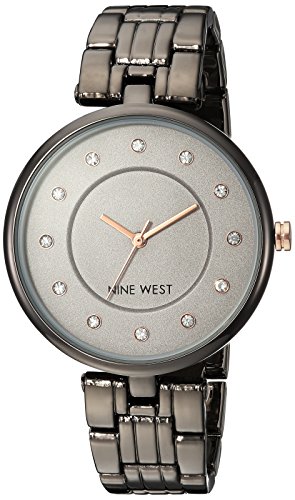 Nine West Women's Crystal Accented Gunmetal Bracelet Watch