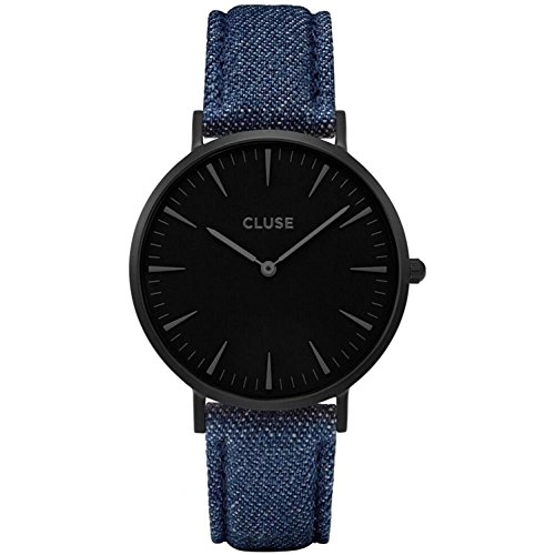 Cluse Women's La Boheme 38mm Blue Denim Band Metal Case Quartz Black Dial Analog Watch CL18507