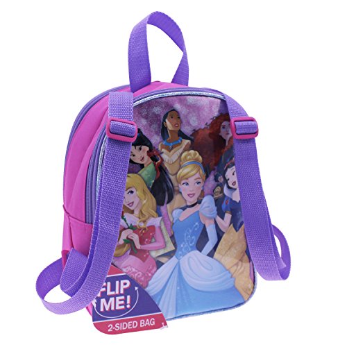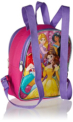 This mini backpack featuring the Disney princess has art on both sides! zippered compartment stores the essentials and shoulder straps are adjustable.
