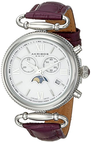 Akribos XXIV Women's AK754PU Swiss Chronograph Quartz Movement Watch with White Mother of Pearl Dial and Purple Leather Calfskin Strap