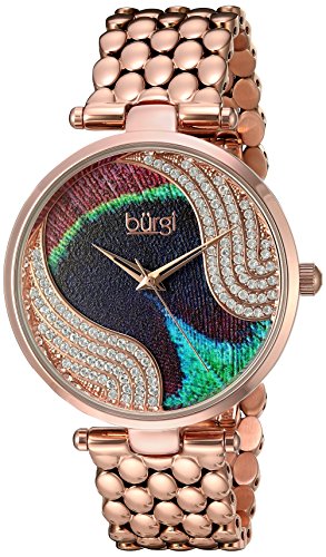 Burgi Women's Genuine Swarovski Crystal Peacock Feather Pattern Dial With Rose-Tone Case on Rose-Tone Stainless Steel Bracelet Watch BUR162RG