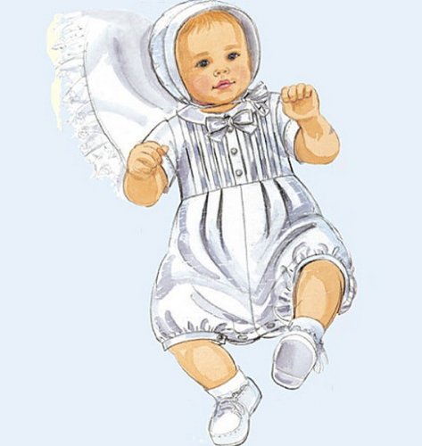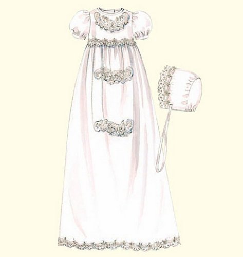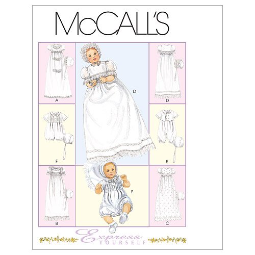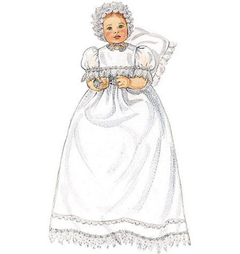 McCall's Patterns M6221 Infants' Christening Gown, Rompers With Snap Crotch In 2 Lengths and Bonnets, All Sizes