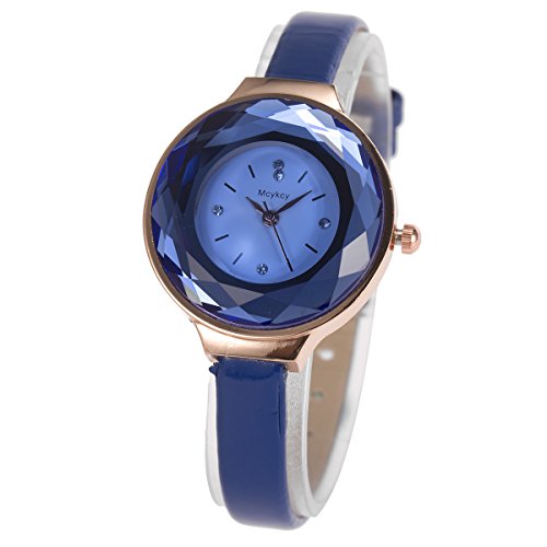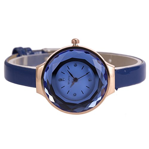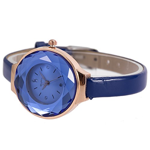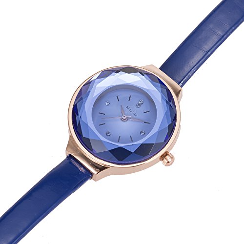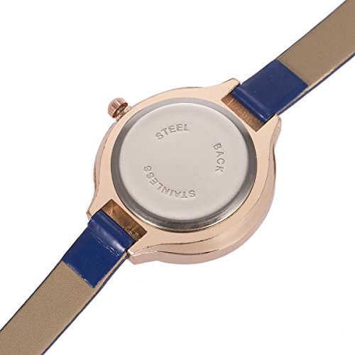 1. Gleaming Appearance - Beautiful Outstanding Good Looking - Fashion Wrist Watch Lady Women Girl Quartz Luxury Blue Glass Leather Strap Band Rose Gold Case Analog