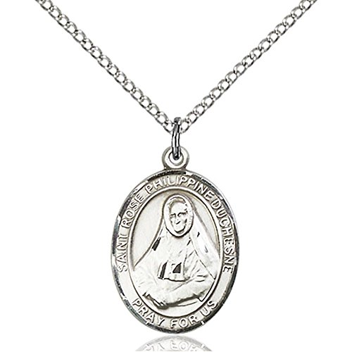 -. Title : Sterling Silver St. Rose Philippine Pendant 3/4 x 1/2 inches with Sterling Silver Lite Curb Chain