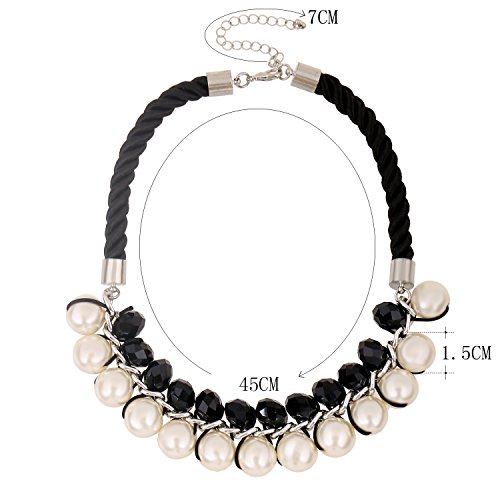D EXCEED Women's Jet Black Crystal Faux Pearl Wrap Statement Necklace, Chocker Necklace, 18+3" Extender