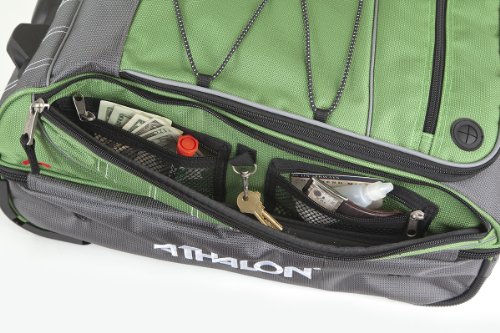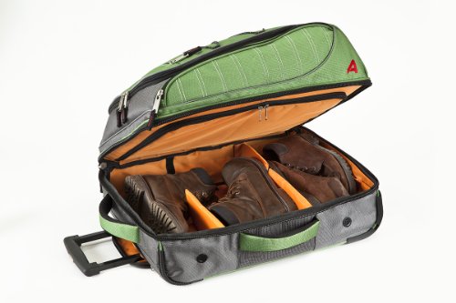 -. Feature : Lightweight and super strong / Sealed ball bearing in-line skate wheels for easy handling / Interior zip-around trap door allows the bag to become adaptable for larger items / Internal dividers are collapsible to organize and protect your shoes, boots and clothing / Bottom protective runners