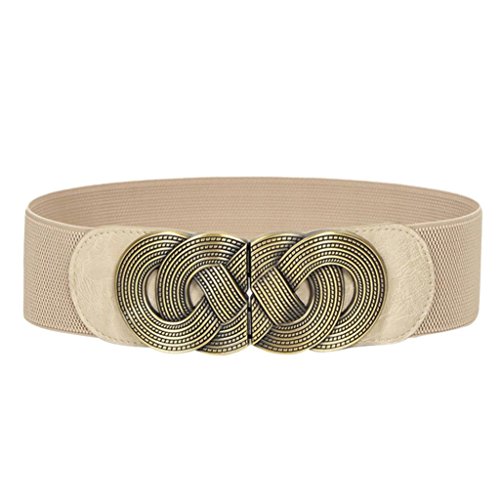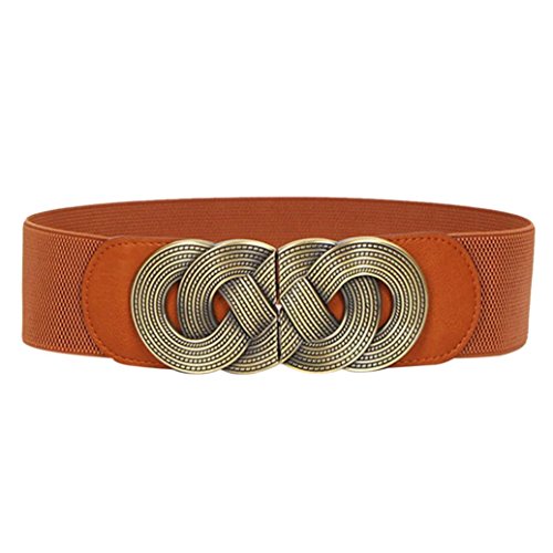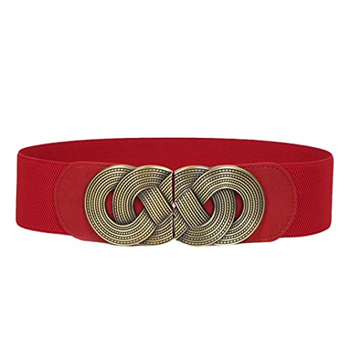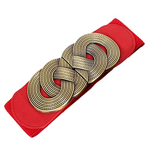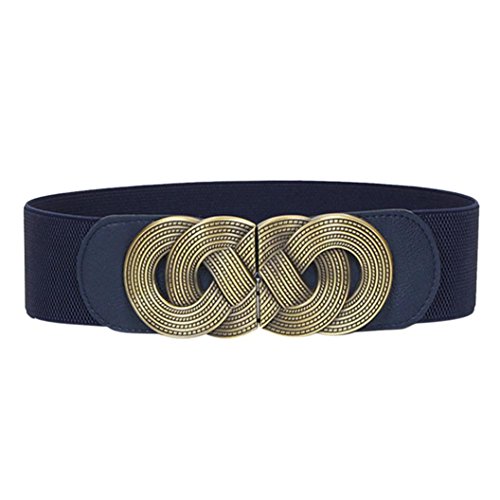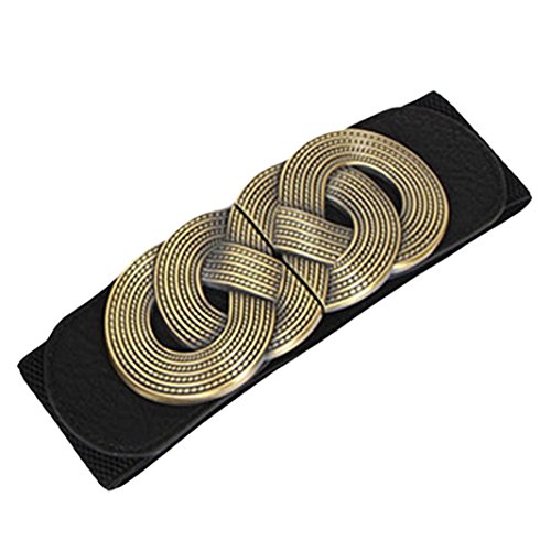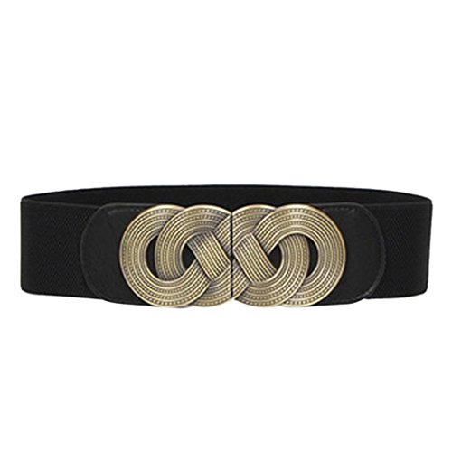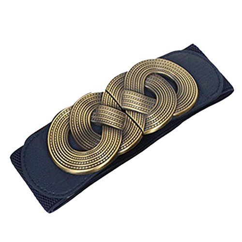 Voberry® Retro Wide Mental Interlock Buckle Womens Elastic Waist Belt Cinch