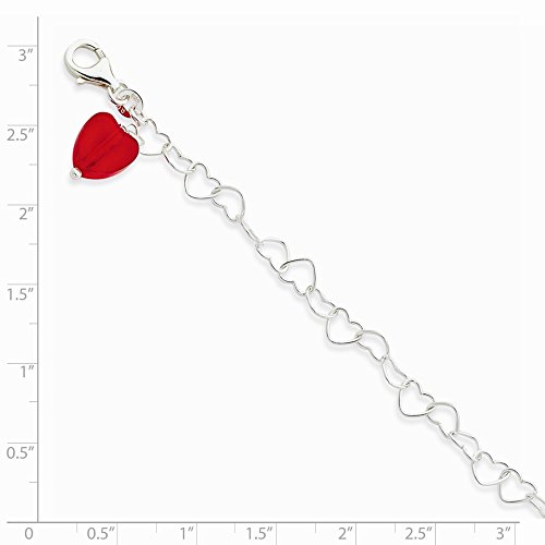 -. Title : 925 Sterling Silver Red Simulated Crystal Stone Heart Link Anklet Bracelet -10" (10in x 5mm)