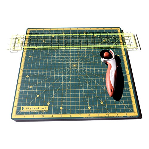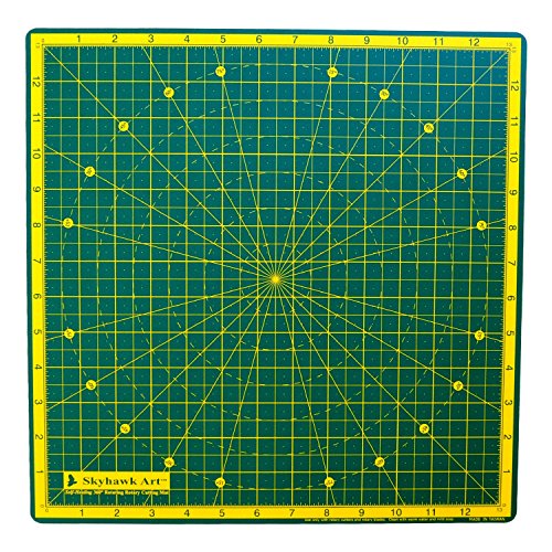WHAT IT IS: Skyhawk 14" x 14" Rotating Cutting Mat provides a protective surface that prevents damage to your tables, desks or light boxes when cutting. It is made of multiple durable layers of pure PVC that gives maximum protection from cutting blades. The mat rotates your object smoothly 360° so you don't have to. The marked patterns and grids help in easier measurements for cutting and can also be used as a guide when drawing. WHY YOU NEED IT: Self-healing long lasting surface reseals after cuts. Popular size ideal for all art & craft projects, scrap booking, kids school projects, workshops etc. Unlike the Fiskars brand, the top mat and the base will not come apart. Ideal for both rotary cutters and various rotary blades. Grid lines, circles, angles and 1/8 inch measurements for detailed cutting. Extends the life of your blades & protects your work surfaces. Modern color and non slip base. Gridlines: 1" to 13" with 1/16" increments.Circles: 2, 4, 6, 8, 10, 12 inches in diameter.Angles: 15°, 30°, 45°, 60°, and 75°. Why You Can Trust Our Mats For Your Projects Our manufacturer have been in the cutting mat business since 1991, and our manufacturing facilities are ISO 9001:2008 certified to ensure our mats meet quality standards.Feature