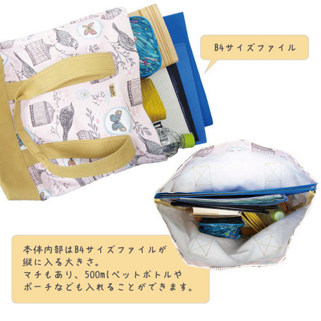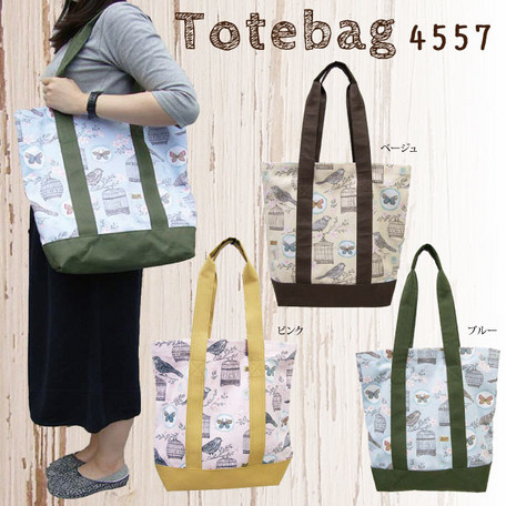 鳥かごと小鳥の柄がかわいいトートバッグです。