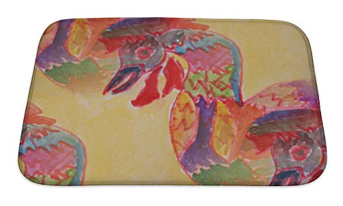 Gear New No Slip Microfiber Memory Foam Blots Colorful Rooster Watercolor Painting Bath Rug Mat, 24" X 17"