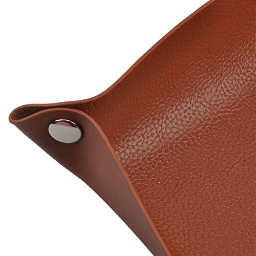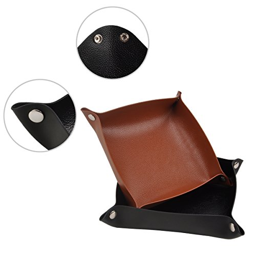 -. Feature : This leather valet tray with soft and delicate leather,no off-smell and easy to clean with wet cloth / Simple and generous design,quality metal snaps in the 4 corners,easy to snap and unsnap / Large enough of leather valet trays for coins,pens,pencils,glasses,keys,wallets and personal items / Multi functions,snapped for valet tray organizer,unsnapped for mouse mat / 100% satisfaction guarantee 100% money back guarantee,we accept returns for no reason as long as you don't satisfied with it