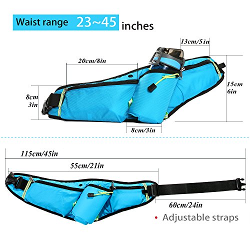 Water Bottle Holder - New design running waist pack with WATER BOTTLE HOLDER (The water bottle is not included) which in the front of the running fanny pack, the elastic string which let bottle won't get in the way of your arms swinging.