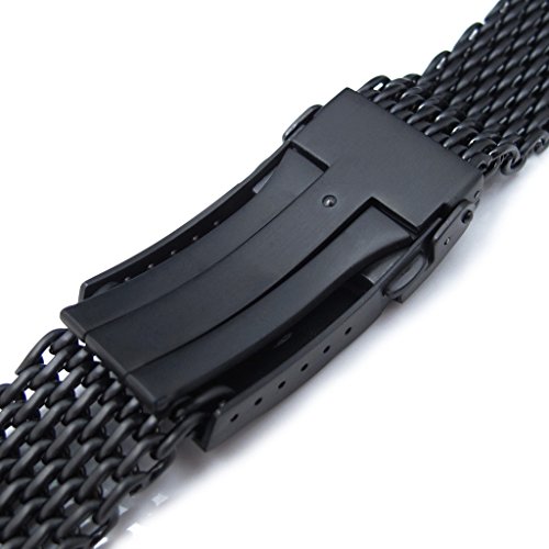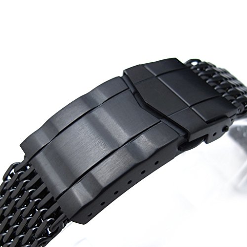 -. Feature : Shipping Estimate : 7 - 10 Business Days within US. / Material: 316L Stainless Steel, 1.2 Wire Mesh / Buckle type: 316L Stainless Steel Solid Submariner Diver Clasp with Push Button / Finish: Matte PVD Black / Design to fit: All watches with 18mm lug width