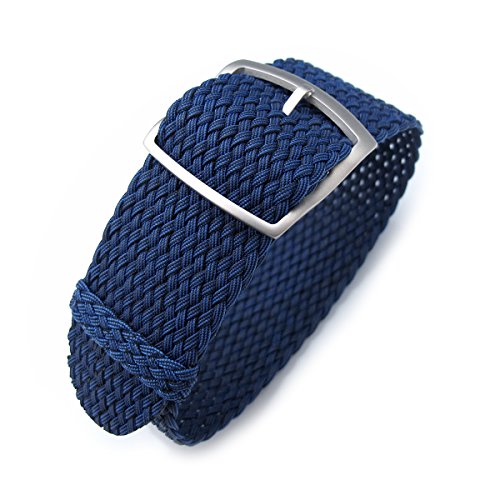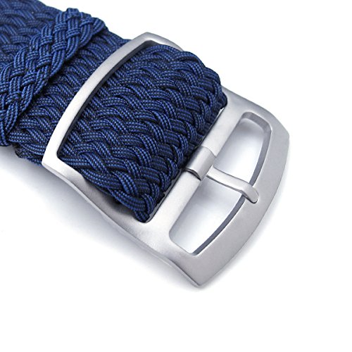 -. Title : 22mm MiLTAT Perlon Watch Strap, Braided Nylon Dark Blue, Sandblasted Ladder Lock Buckle