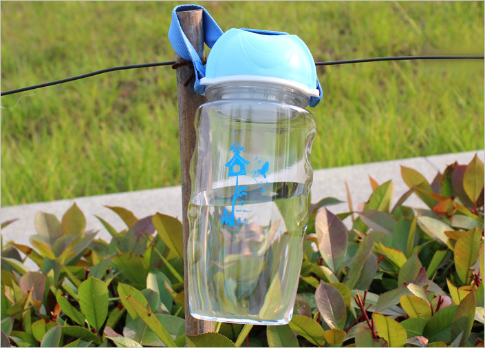 产品特点 杯子造型独特,侧面凹陷指位,握持容易,密封性好不漏水。杯身为食品级PC制成,杯盖为PP材料。杯盖尼龙提手设计,可向上提,也可以侧提,尤其适合运动环境下喝水。内置塑料滤网,滤茶叶或者果肉。