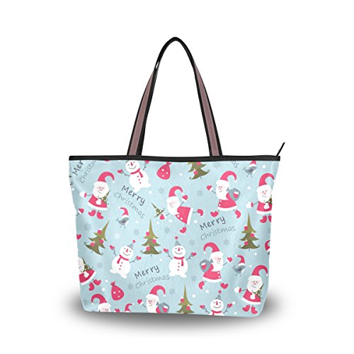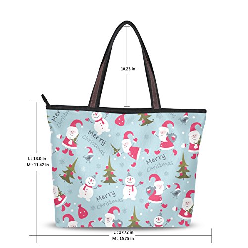 JSTEL Women Large Tote Top Handle Shoulder Bags Snowman And Christmas Tree Patern Ladies Handbag