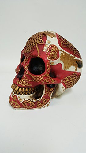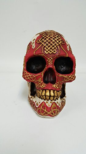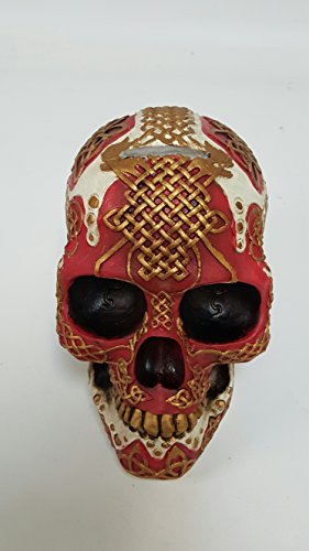 Figurine Celtic Lion Skull Bank Hand Painted Resin 6411 (Red)