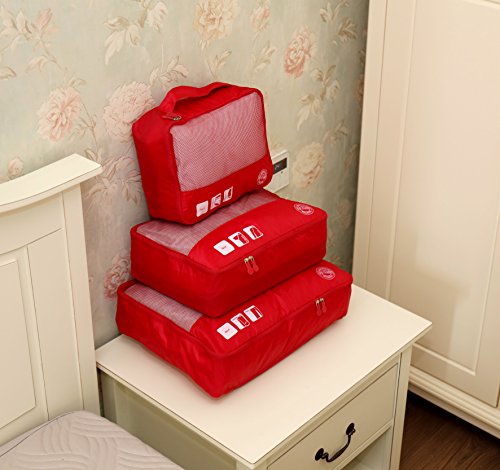 -Polyester material and soft nylon net, waterproof, foldable, portable. Luggage Cubes Come with Breathable MeshDesign: Keep inside visible and make seeking stuff more easy; Sturdy Handle:Convenient for carrying
