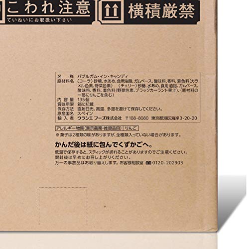 原材料:<コーラ>砂糖、水あめ、食用油脂、ガムベース、酸味料、香料、着色料(カラメル色素、野菜色素) <チェリー>砂糖、水あめ、食用油脂、ガムベース、酸味料、香料、着色料(野菜色素、ブラックカーラント果汁)、(原材料の一部にりんごを含む)