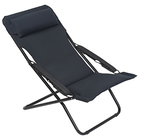 Lafuma Transabed XL Plus Air Comfort - Black Steel Frame - Acier Air Comfort Fabric Folding Sling Chair - Premium Outdoor Folding Lounge Chairs