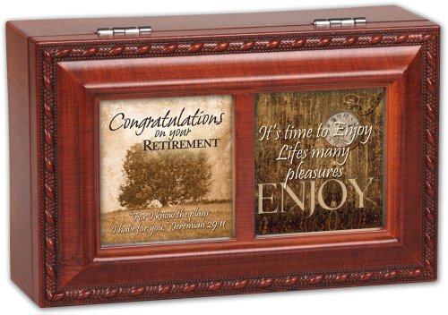 Cottage Garden Congrats Retirement Woodgrain Petite Music Box / Jewelry Box Plays How Great Thou Art
