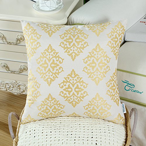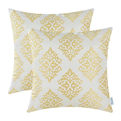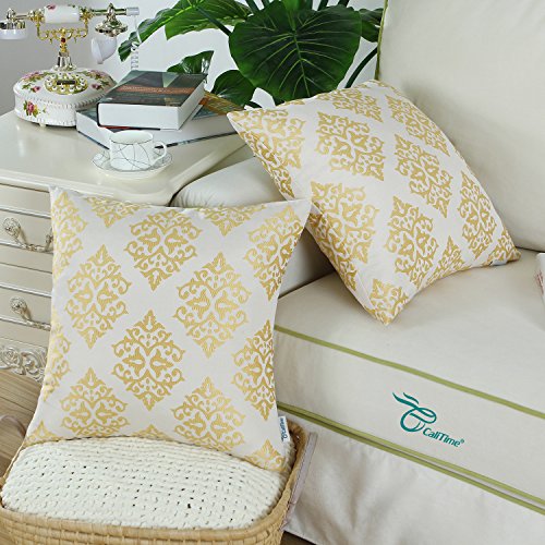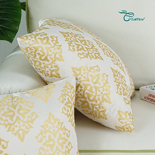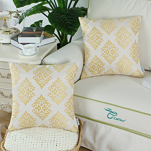 Pack of 2 CaliTime Throw Pillow Covers 18 X 18 Inches Both Sides, Vintage Damask Floral, Gold