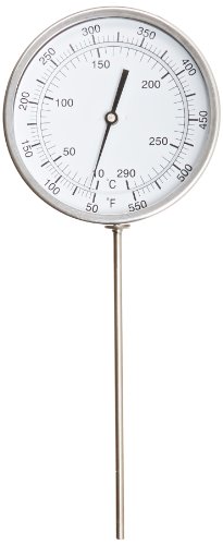 PIC Gauge B5A9-RR Stainless Steel Bimetal Thermometer with Adjustable Angle, 5" Dial Size, 9" Stem Length, 50/550° F and 50/550° C Temperature Range