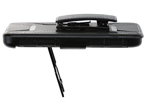 Rugged Toughness Military Grade Super Heavy duty Dual Layer Armor Combo Holster with Swivel Belt Clip Case brings your device the ultimate protection against high impact drops or bumps for the life of your phone. The outer rugged hard polycarbonate shell capable of widthstanding strong falls combines with the soft thick inner layer of high elasticity, shock absorbing silicone protecting the device from shock of hard surface impact. A durable built in Kickstand provides comfortable viewing. The Heavy duty holster's interior is lined with antiscratch micro fiber for your LCD protection when placed face in. The holster is equiped with a locking swivel belt clip that can easily be locked into an extended position and provided different vieweing anagles while watching movies or video calls, and is also rotatable 180 degrees.