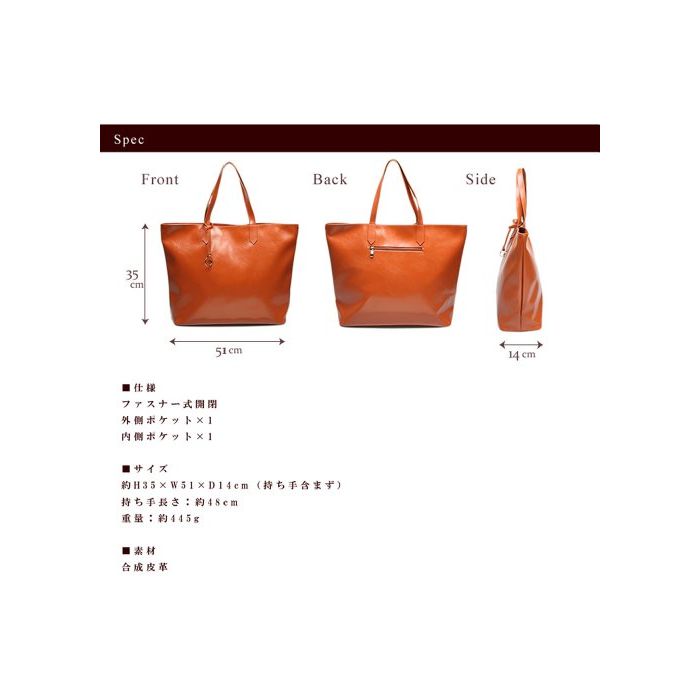 사이즈 약H35:W51:D14cm(손잡이 포함하지 않아) 핸들:약48cm 무게 광택 있음:약550g 광택 없음:약355g
