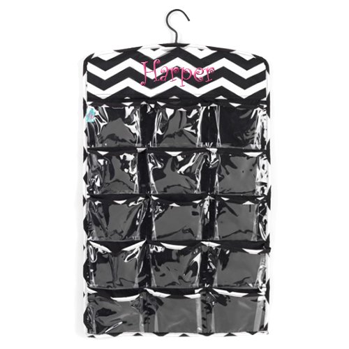 aBaby Chevron Hanging Organizer, Black, Name Harper