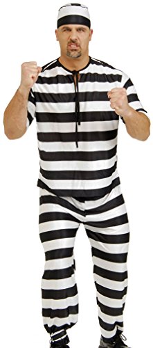 -. Binding : Apparel -. Brand : Rubie's -. Department : mens -. Feature : Prisoner man costume in classic black and white stripes / Hat, shirt, and pants / Ball and chain available separately / Available in small (up to 36-inch chest), standard (up to 46-inch chest), and xl (up to 50-inch chest) / From Rubie's costume company, celebrating over 60 years offering an extensive line of costumes for the whole family -. Genre : Career -. IsAdultProduct : 0 -. Label : Rubies Costumes - Apparel -. Manufacturer : Rubies Costumes - Apparel -. PackageQuantity : 1 -. ProductGroup : Apparel -. ProductTypeName : ADULT_COSTUME -. Publisher : Rubies Costumes - Apparel -. Studio : Rubies Costumes - Apparel -. Title : Rubie's Costume Co Men's Adult Prisoner Man Costume