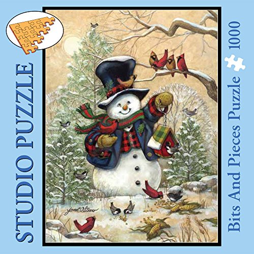 Studio : Melville Direct Publisher : Melville Direct Binding : Toy Product Description Winter Friends is a 1000 Piece Jigsaw Puzzle Designed by artist Janet Stever. A snowman, dressed in a coat, scarf, hat, and mittens, holds up a birdhouse to welcome his bird friends. Birds feast on seeds strewn about the ground. This puzzle is 20" X 27" when completed. Since the 16th century, jigsaw puzzles have been a favorite pastime for all ages. Now, with technological advances, Bits And Pieces has taken jigsaw puzzles to a new level of superior quality and challenging fun. Every original Bits And Pieces jigsaw puzzle is made with ultra-heavy weight board and cut with quality random puzzle dies with fully interlocking pieces for a secure fit. At Bits And pieces, we believe that every truly exceptional jigsaw puzzle starts with the work of a truly exceptional artist. We understand what it takes to make a great puzzle. The kind that challenges rather than frustrates, where each area has depth and detail that unfold into a larger beauty. Bits and Pieces commissions original artwork by artists from around the world to create imaginative artwork that puzzlers like you are looking for in a wide variety of puzzle sizes and styles for any age or ability. We know every puzzler is different, so every Bits And Pieces original puzzle is manufactured in two different piece counts, ranging from 100 pieces to 2000 pieces. We also have an innovative collection of specialty puzzles including glow-in-the-dark puzzles, glitter effects puzzles, unique shaped puzzles and puzzles with oversized pieces. This 1000 Piece Puzzle was created by the artist Janet Stever. 0