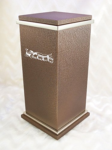 PERSONALIZED Custom Engraved Toy Train Cremation Urn Vault by Amaranthine Urns, made in the USA, Peyton RG Painted Silver (up to 250 lbs living weight) (Champagne)