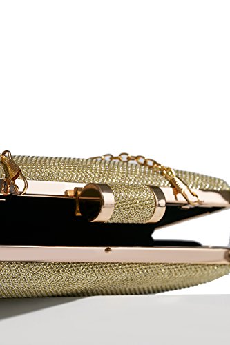 -. Feature : Sparkly clutch purse with a barrel-shaped top clasp, a removable chain strap and a fully lined velvety interior. Perfect addition to your evening, formal, prom or cocktail outfit. / Strong and reliable clasp closure keeps your belongings safe. All metal parts are resistant to rusting, corrosion, oxidation and tarnishing. The colors stay strong, do not fade with time and will not leave marks on you clothing. / Keep your hands free! The length of the drop-in chain strap (47") allows you to wear the clutch purse as a crossbody or shoulder bag that hits at the hip. / The clutch purse is roomy enough to keep your cell phone, home and car keys, credit cards, lipstick. Approximate measurements of the clutch: 6.9" (L) x 3.7" (H) x 1.6" (W). Please note that inside dimensions are about 0.6" smaller. / Buy with confidence! All our handbags have 100% 30 days money back guarantee. Top quality backed with exclusive lifetime warranty!