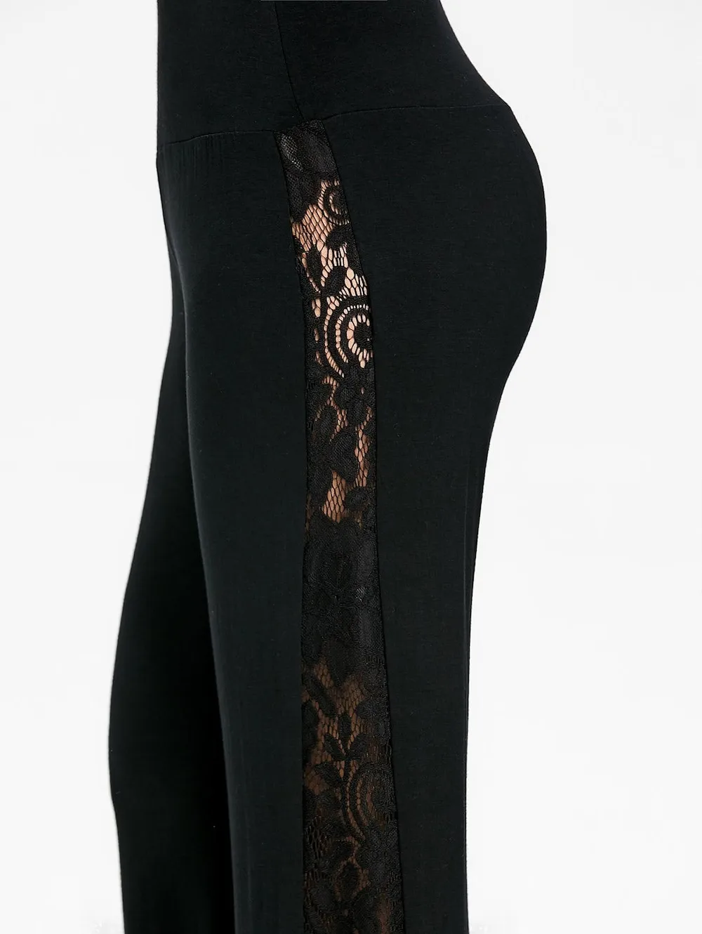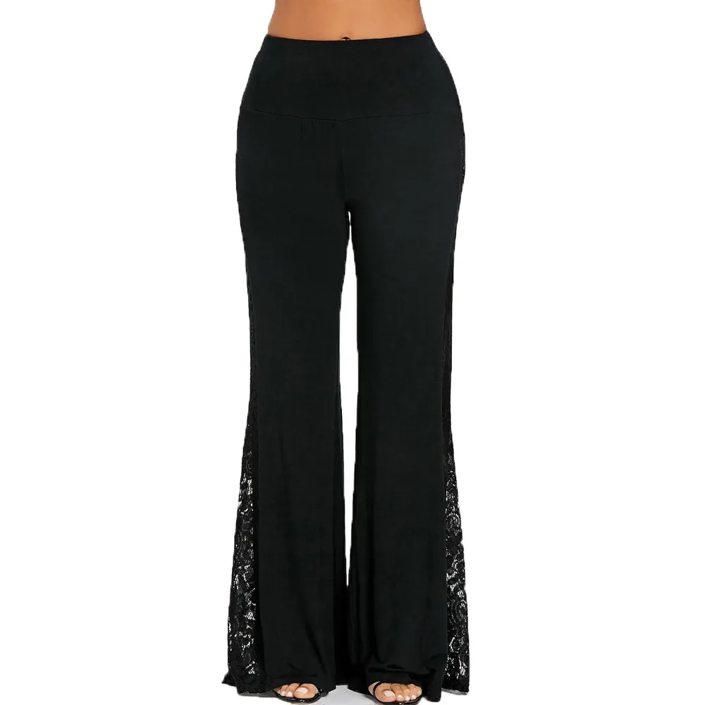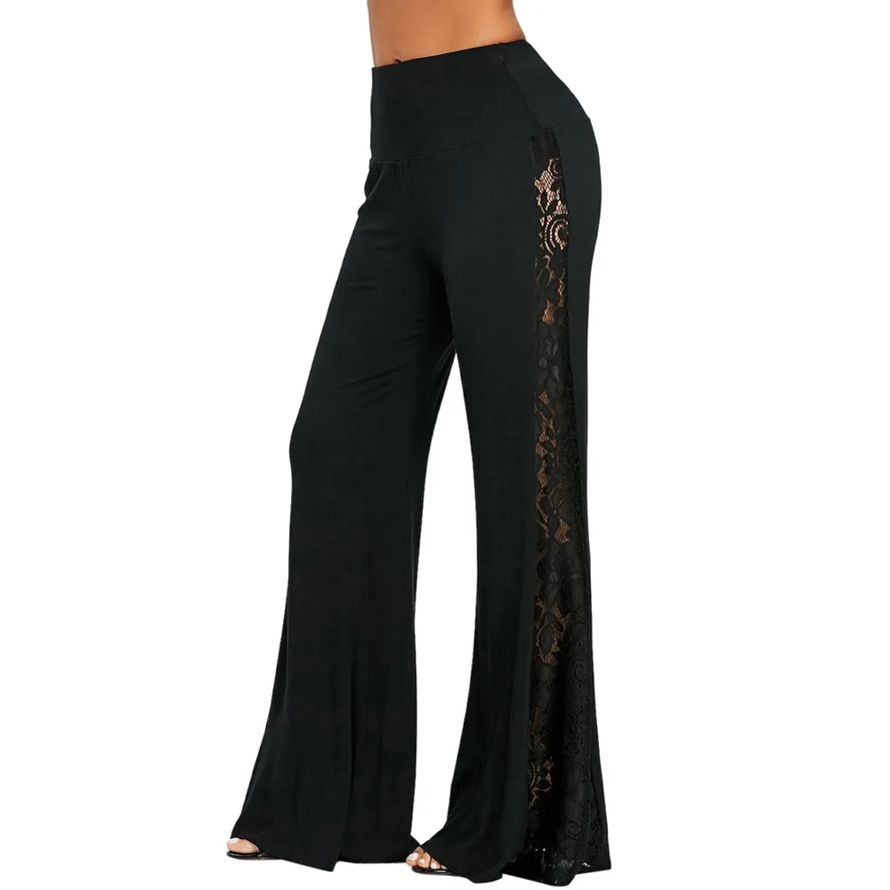 Model Number:Fashion Womens High Waist Lace Insert Wide Leg Pants Leggings Loose Tr