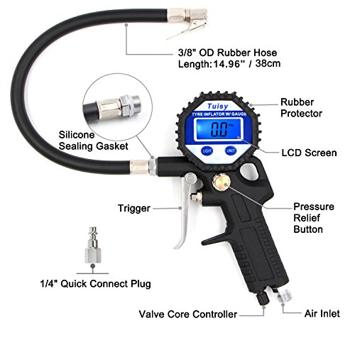 Digital Tire Pressure Gauge, Tuisy Tire Inflator with Hose