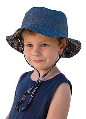 Anton Check Boys Reversible Sun Hat / Beach Hat, Upf50+ Sun Protection
