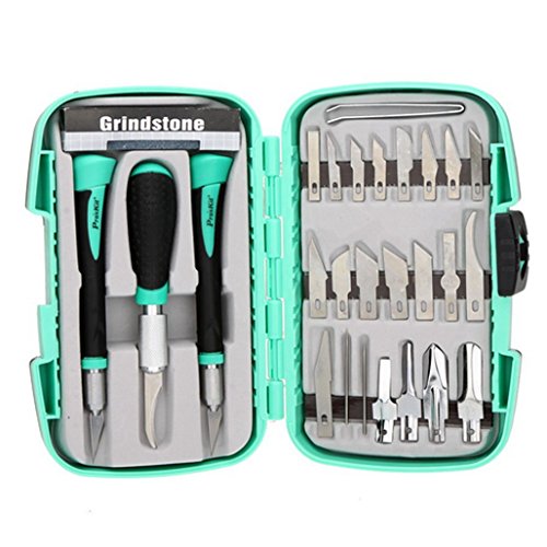 Brand number: PD-395A Material: Stainless Steel Type: Multi-functional knife Application range: glass wool surface engraving, model making, etching, engraving Contents: 3pcs double color handle 23pcs SK5 blade 2pcs scraper 1pcs tweezers 1pcs grindstone 0 |