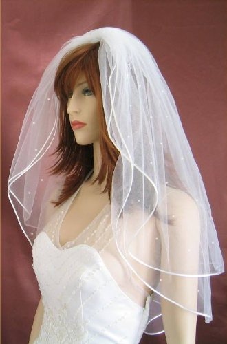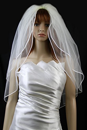 Studio : Velvet Bridal Publisher : Velvet Bridal Binding : Misc. Product Description Gorgeous brand new 2 Tiers Fingertip Length veil with 72in width in fullness. The edge is beautifully finished with 1/8in Round Satin Cord Edge. Standard cut design, the veil is cut in a soft rounded shape, the edging of the veil runs up the sides and is gathered into the comb. Scattered with 5mm sparkling Swarovski rhinestone elements.This brand of rhinestones is the highest quality available in the market that provides that extra shine. Veil has ample amount of rhinestones dispersed on it evenly. The material is soft and flowing, allowing the veil to drape perfectly.The veil has Silver wire comb attached - wire combs are more pliable and versatile, it can be contoured to your head shape and can be pinned if necessary (as opposed to plastic, which is thicker, inflexible and more cumbersome). Due to variations in computer screen settings, the color may appear differently than the actual color of the veil.Please order our color swatch so you can be confident that you are getting the veil color which matches your dress. 0