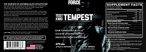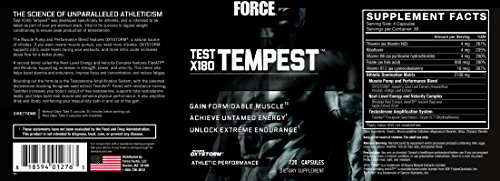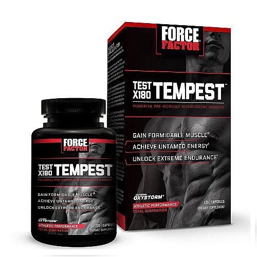 Studio : Force Factor Publisher : Force Factor Binding : Health and Beauty Product Description Powerful Pre-Workout Testosterone Booster Gain Formidable Muscle Achieve Untamed Energy Unlock Extreme Endurance The Science of Unparalleled Athleticism Test X180 Tempest was developed specifically for athletes, and is intended to be taken as part of your pre-workout stack. Vital to its success is regular weight conditioning to ensure peak production of testosterone. The Muscle Pump and Performance Blend features OXYSTORM, a natural source of nitrates. If you want insane muscle pumps, you need more nitrates. OXYSTORM supports nitric oxide levels during your workouts, and more nitric oxide increases blood flow for a better pump. A second blend called the Next-Level Energy and Velocity Complex features ElevATP and Rhodiola, supporting increases in strength, power, and velocity. This blend also helps boost stamina and endurance, improve focus and concentration, and reduce fatigue. Rounding out the formula is the Testosterone Amplification System, with the patented testosterone-boosting fenugreek seed extract Testofen. Paired with resistance training, Testofen increases your bodys output of free testosterone, supports total testosterone levels, and helps build lean muscle and enhance physical performance. It also amplifies drive and libido, reinforcing your masculinity both in and out of the gym. 0
