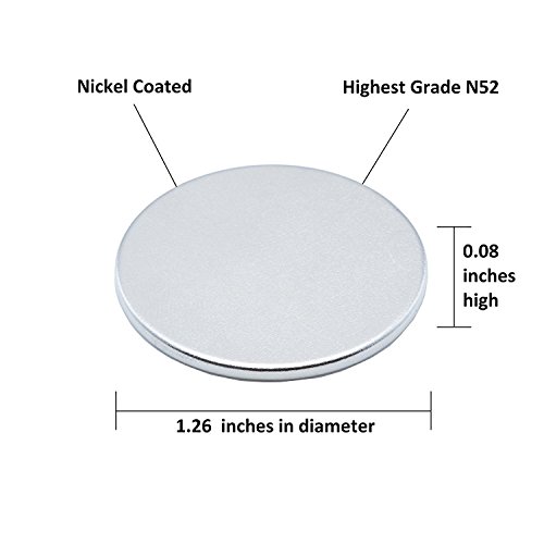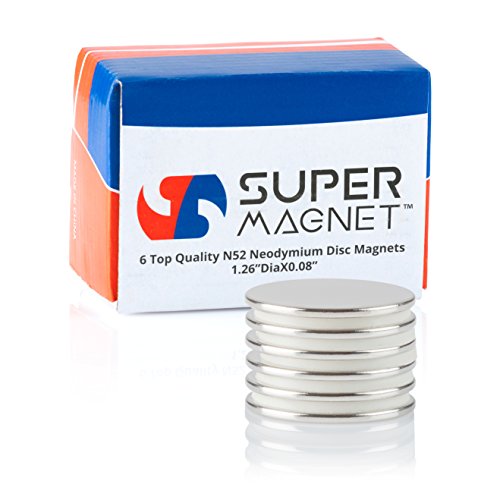 Super Magnet Rare Earth Neodymium N52 NdFeB Permanent Disc Magnets, 1.26”D X 0.08’’H, Set Of 6